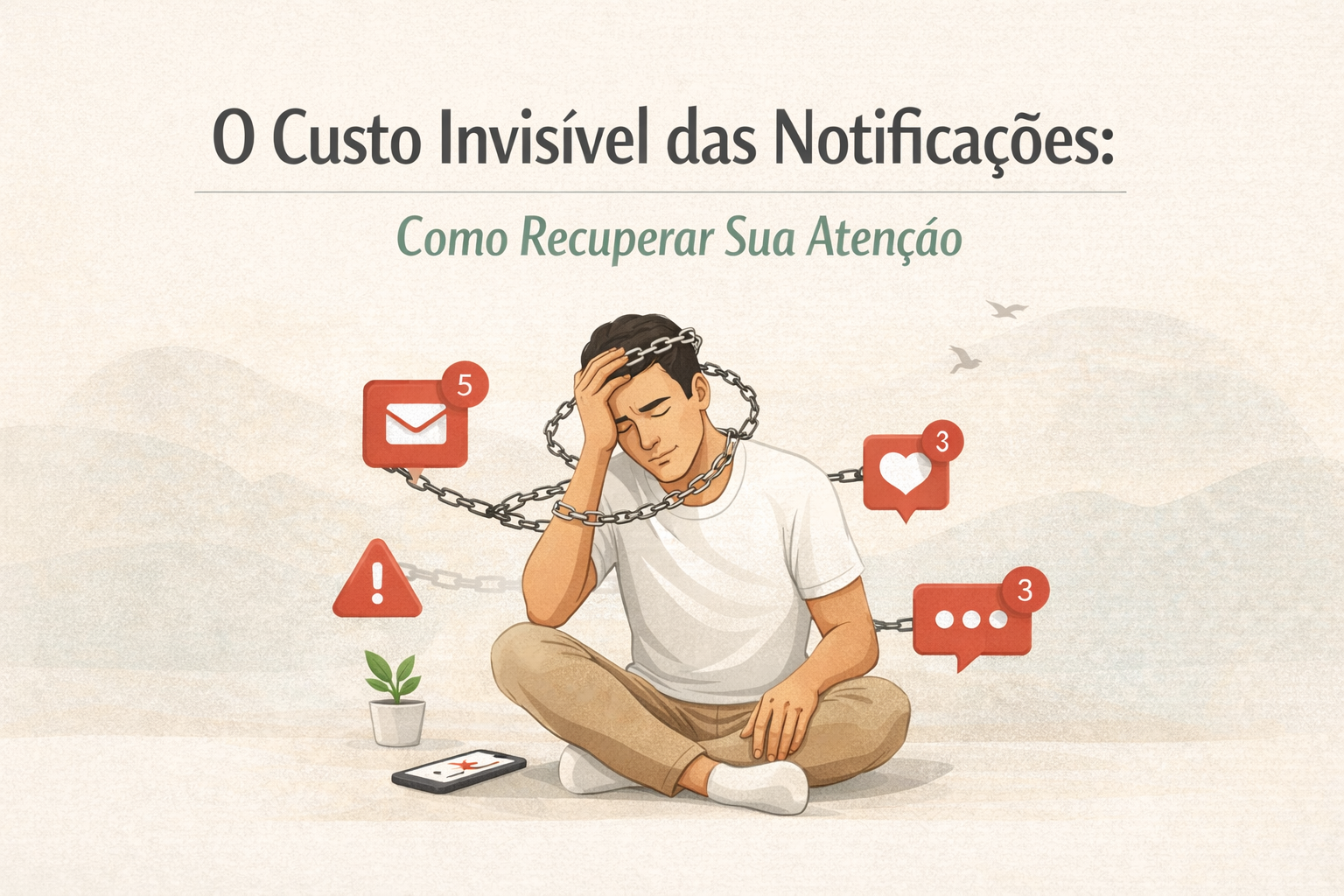Custo das notificações vai além do tempo gasto. Descubra como recuperar sua atenção e produtividade com estratégias que realmente funcionam.
