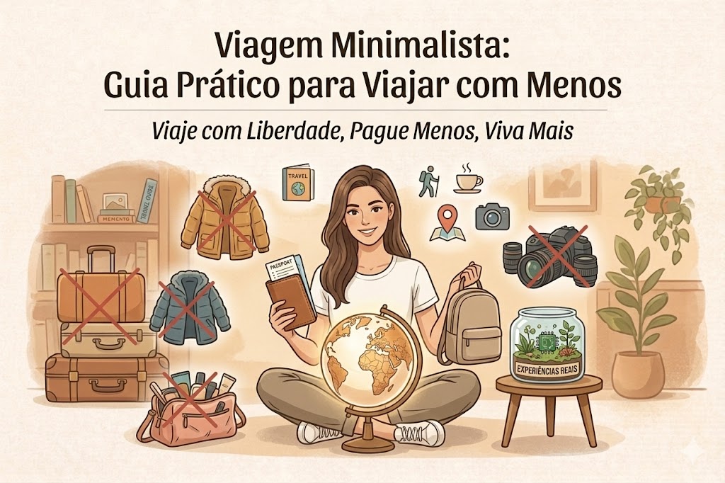 Viagem minimalista: aprenda a viajar com menos bagagem, economize em taxas e desfrute de mais liberdade. Guia prático com checklist e dicas essenciais.