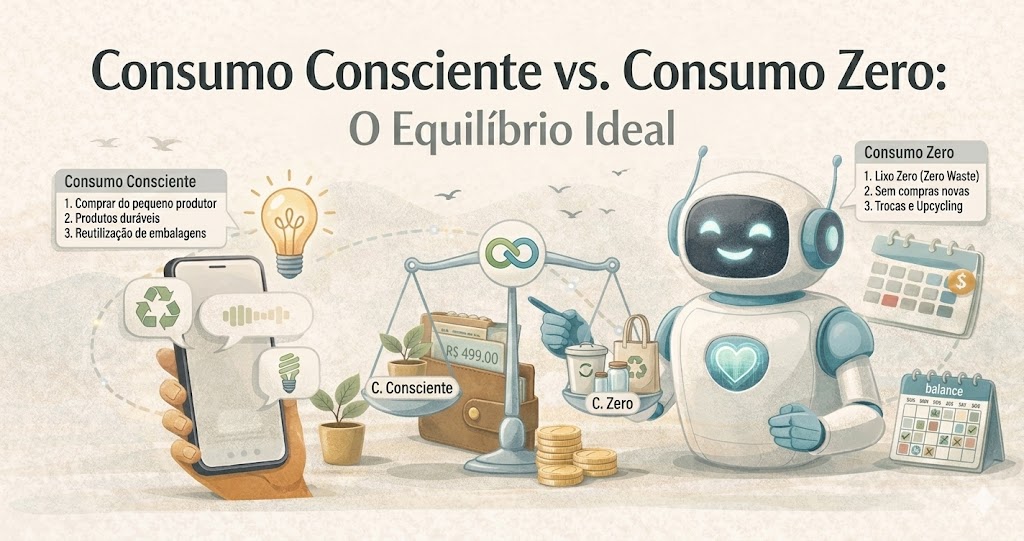 Consumo consciente: entenda a diferença entre consumo zero e consciente e como equilibrar essas práticas para um futuro sustentável.